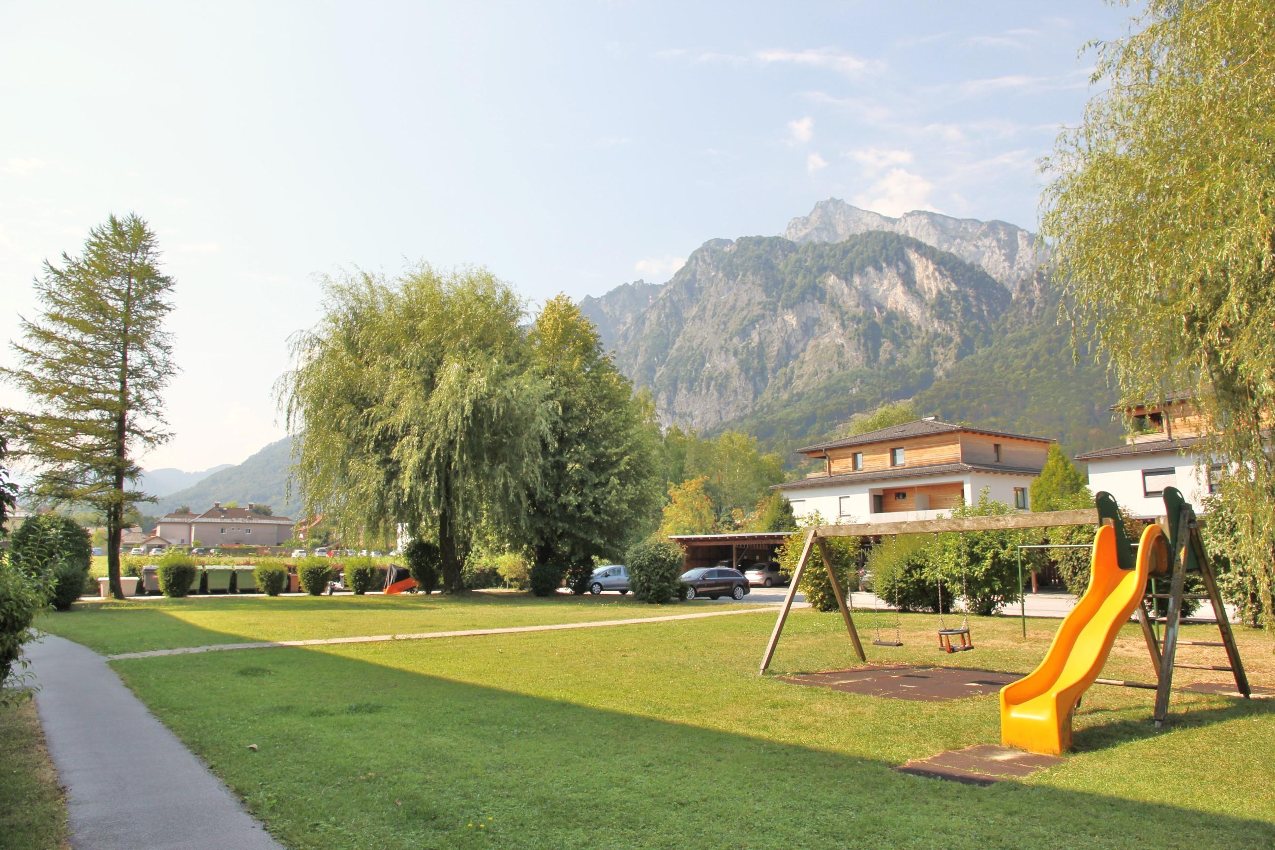 Der Blick von der verglasten Loggia in ruhiger Lage richtet sich nach Süd-Westen mit einem herrlichen Untersbergblick. Hochwertige Fenster mit 3-fach Verglasung.