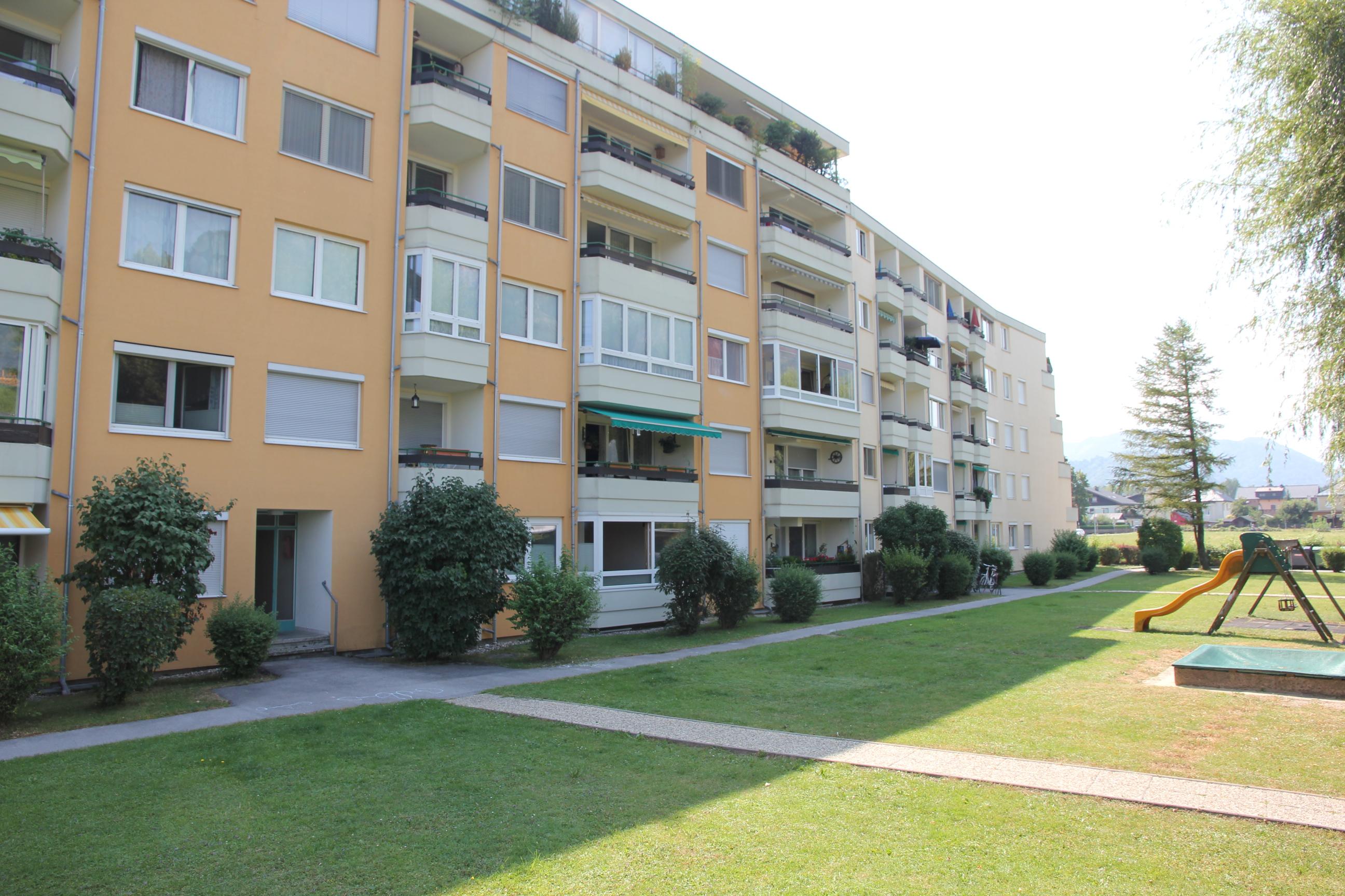 Die großzügige 3-Zimmer Wohnung (81 m²), teilweise möbliert, liegt im Erdgeschoß eines Mehrparteienhauses (36 Wohneinheiten, BJ. 1976).