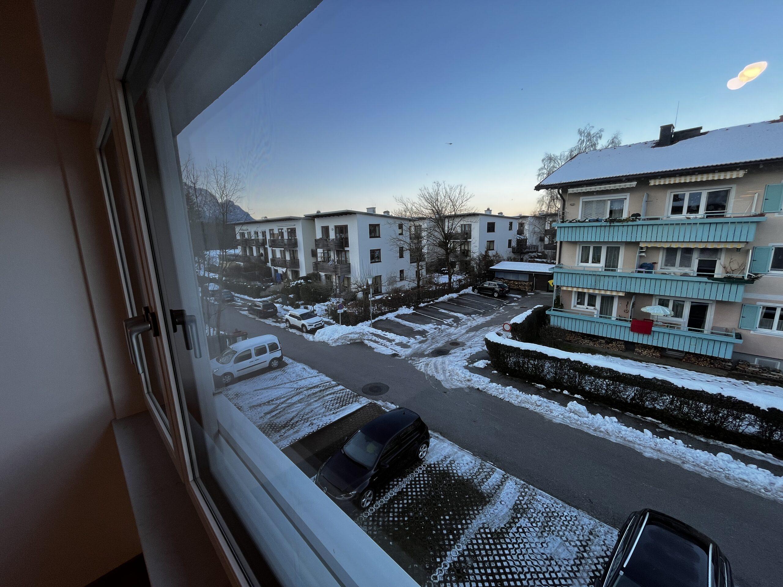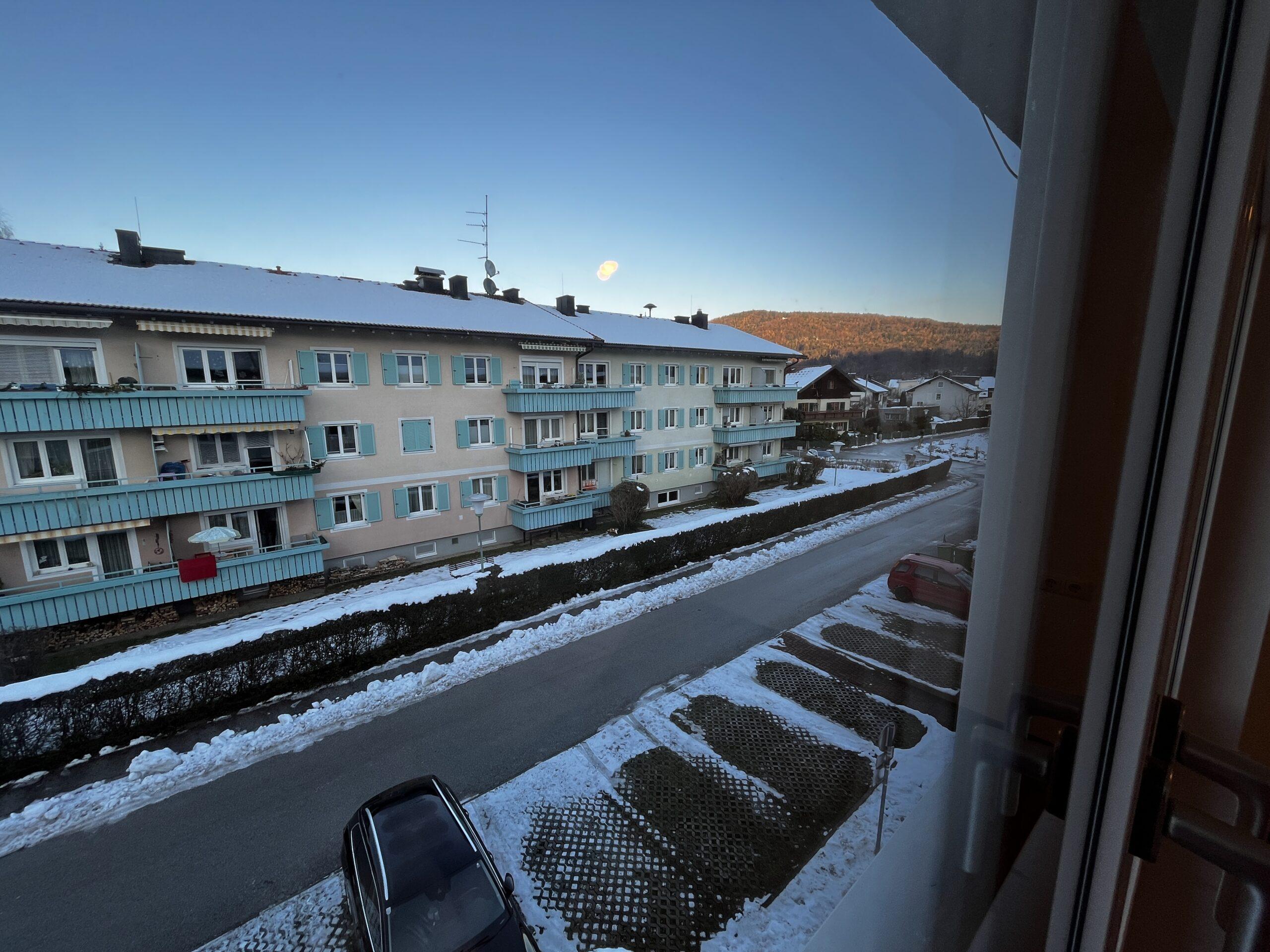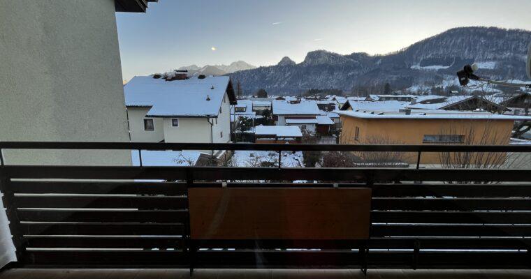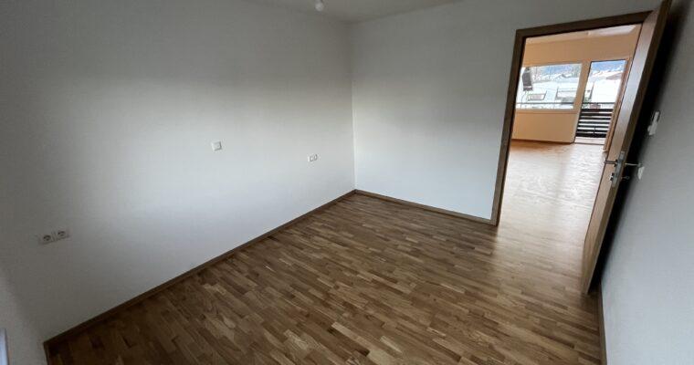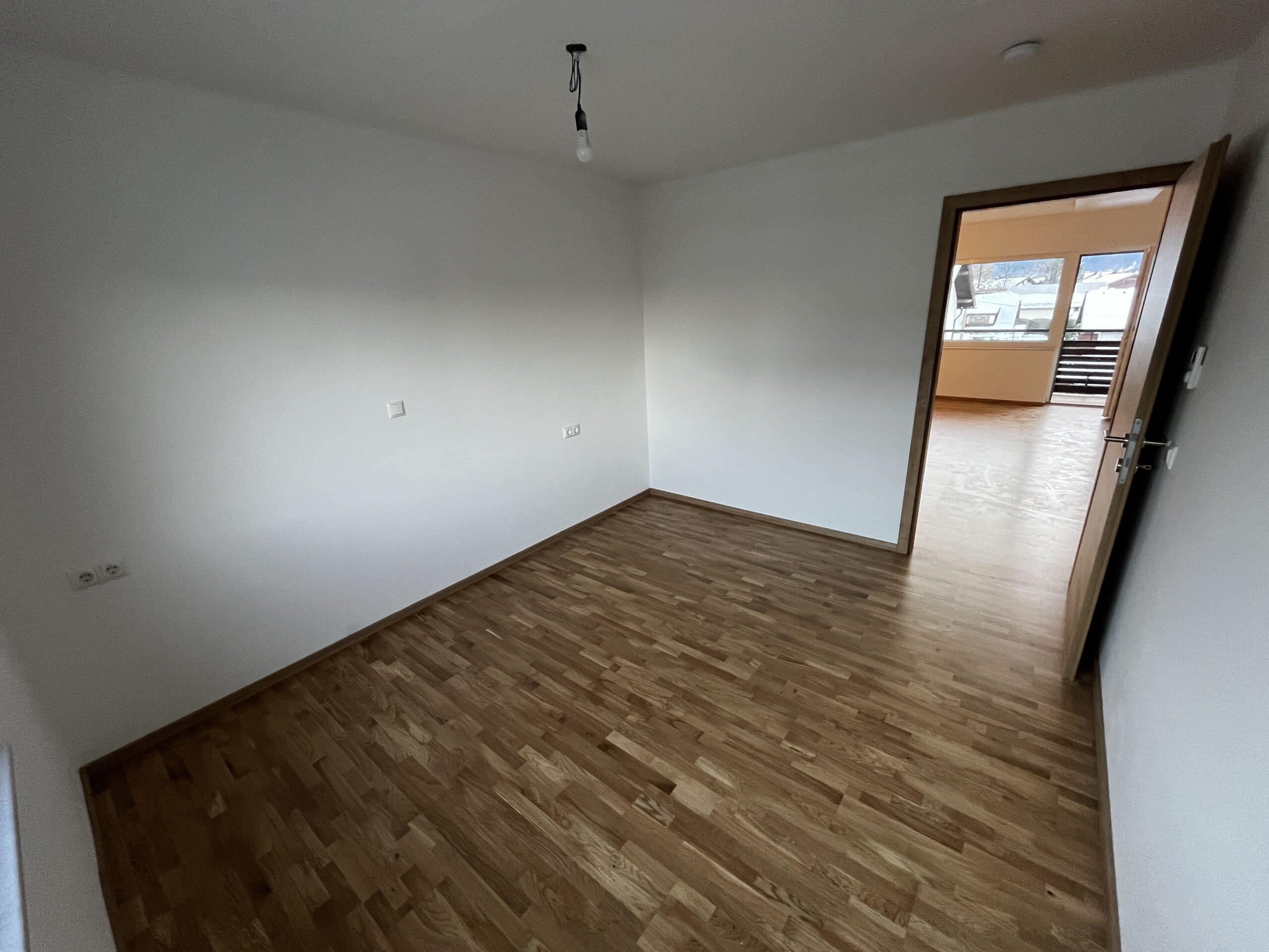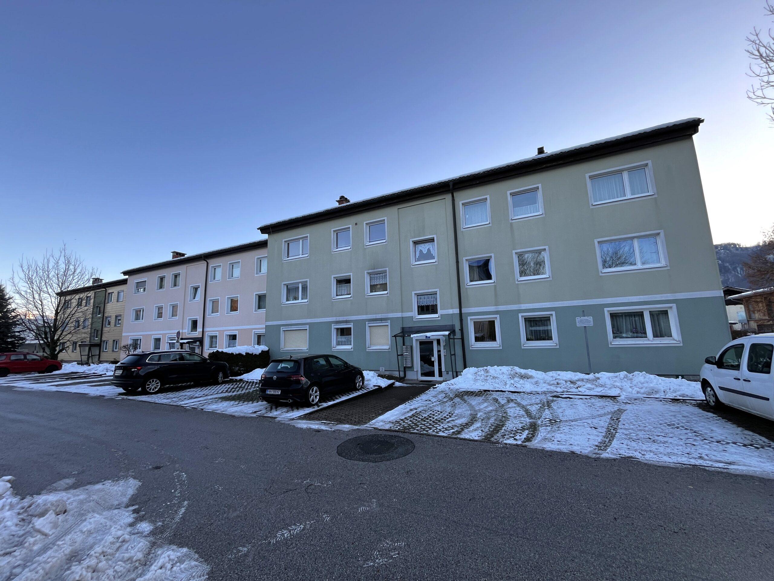 Aufteilung/Ausstattung: Großes Wohnzimmer (ca. 24 m²) mit Zugang zur sonnigen Loggia in Süd – Ausrichtung mit Blick auf den Götschen/Barmstein, Schlafzimmer, Küche, Vorratszimmer, Badezimmer/WC mit Waschmaschinenanschluss und Fenster, Vorzimmer/Flur.