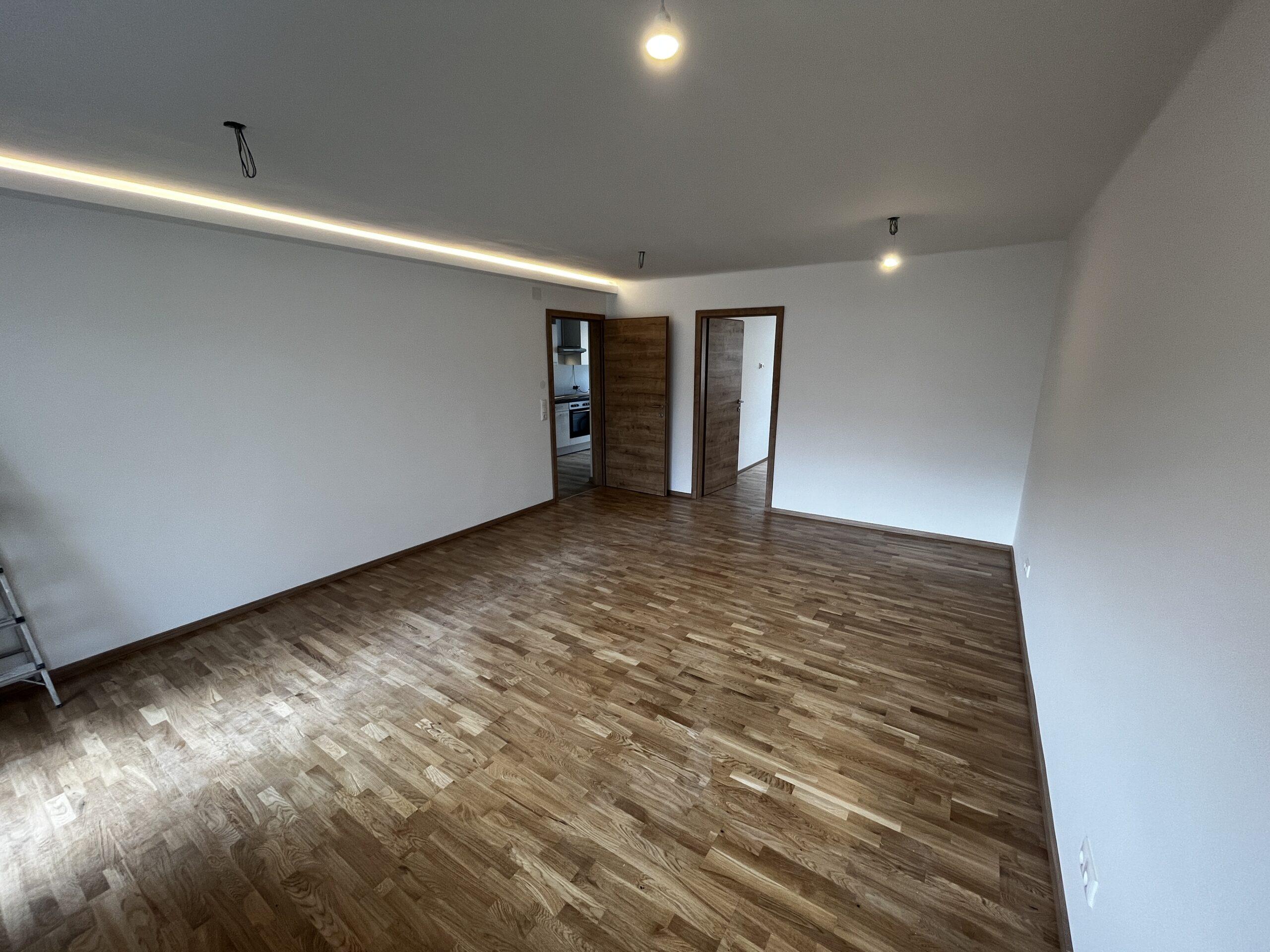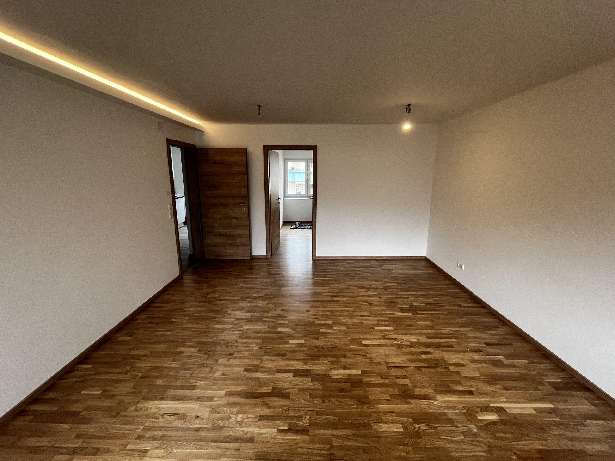 Die Wohnung wurde umfassend saniert: Neue Raumaufteilung, Modernisierung der Elektro -/ Wasser -/ und Heizungsanlage, Austausch von Wasserrohren und Elektroleitungen, neue Fenster & Türen, neue Böden, neues Bad/WC, neue Küche.