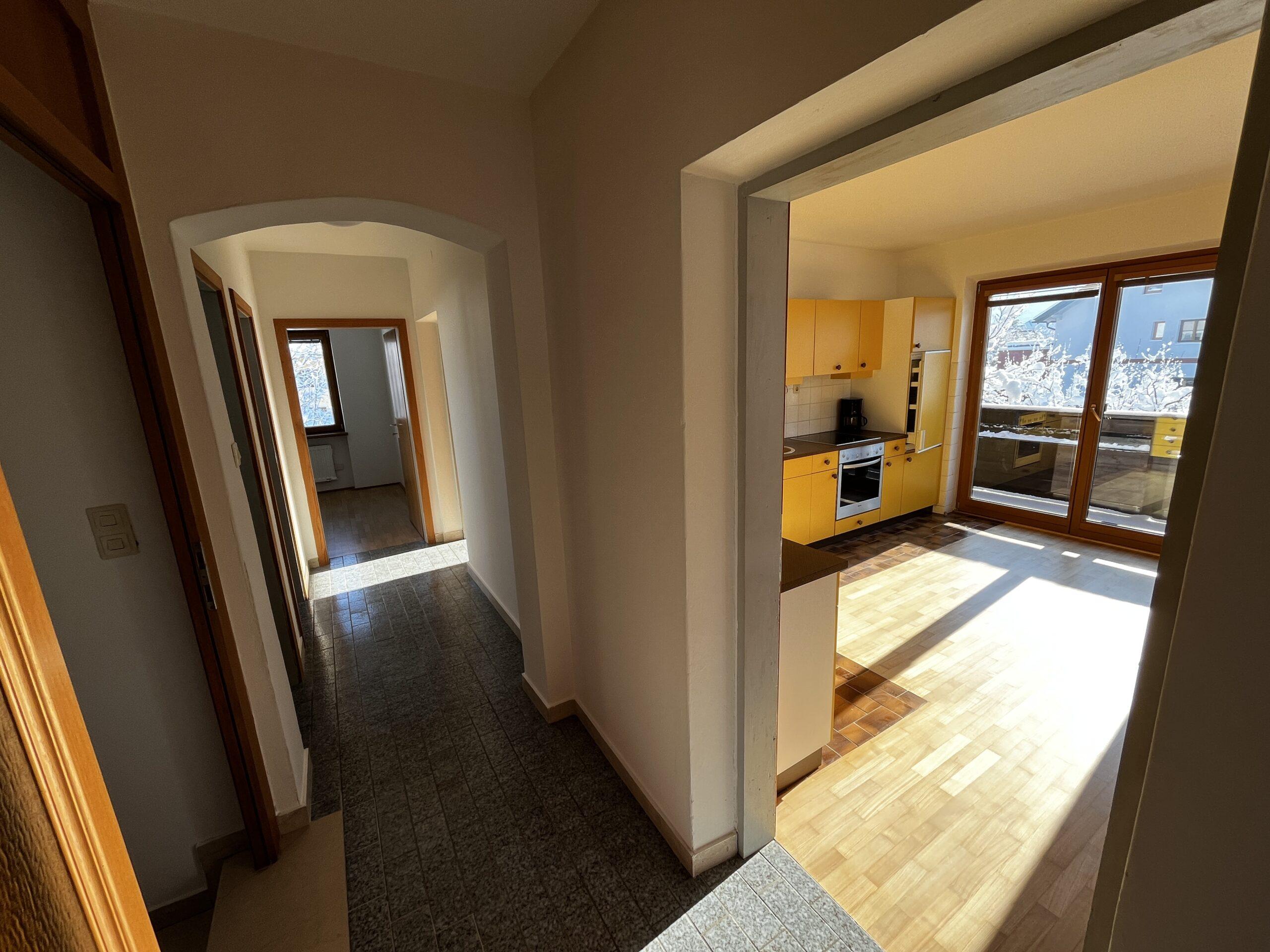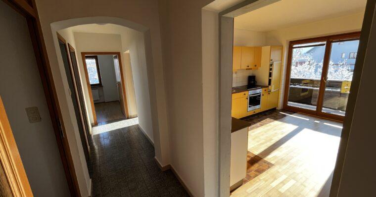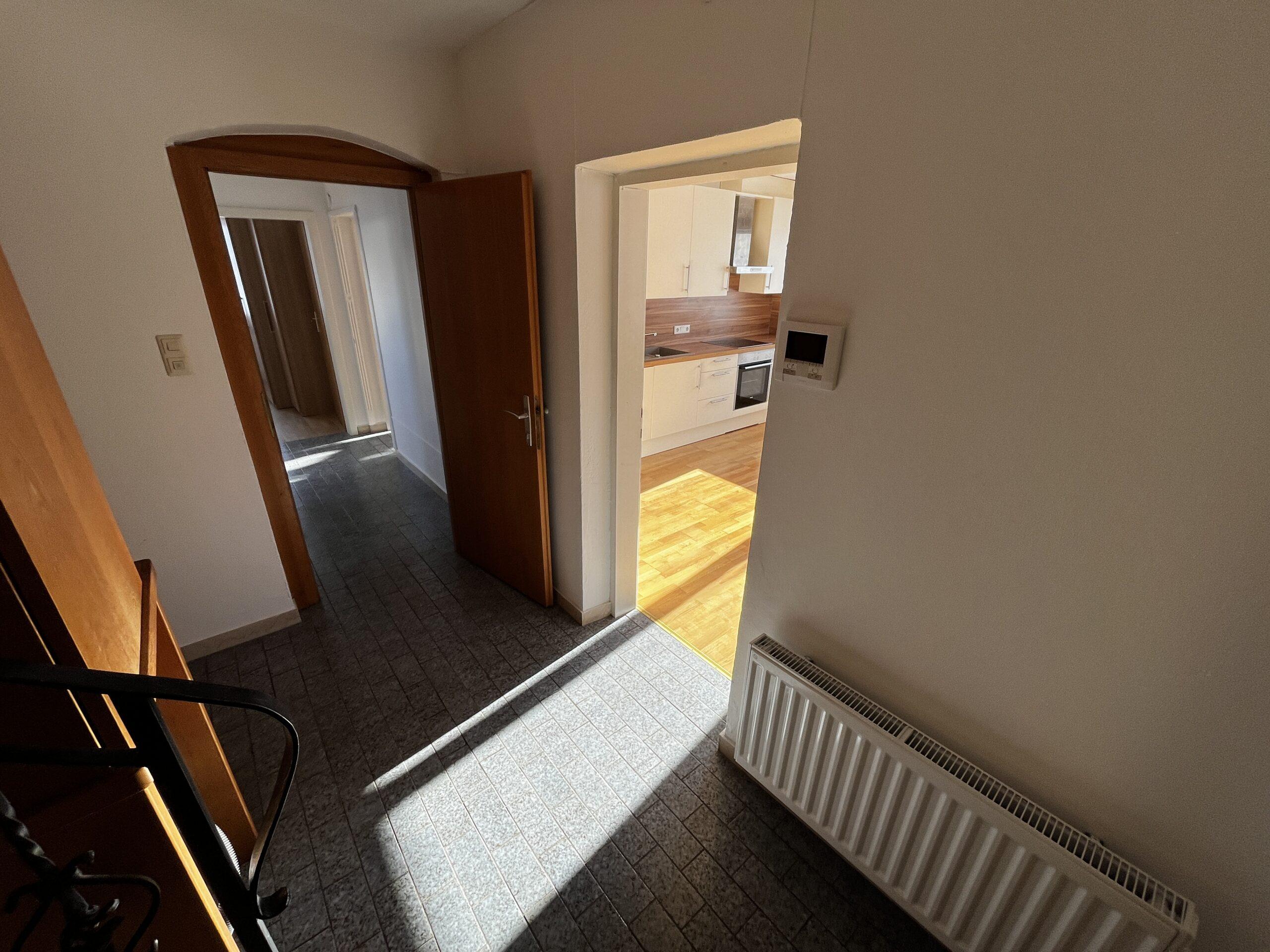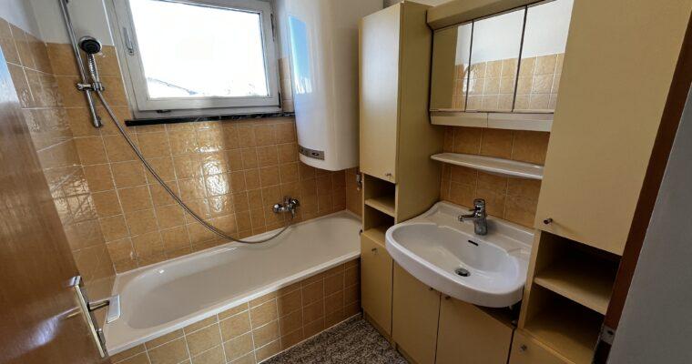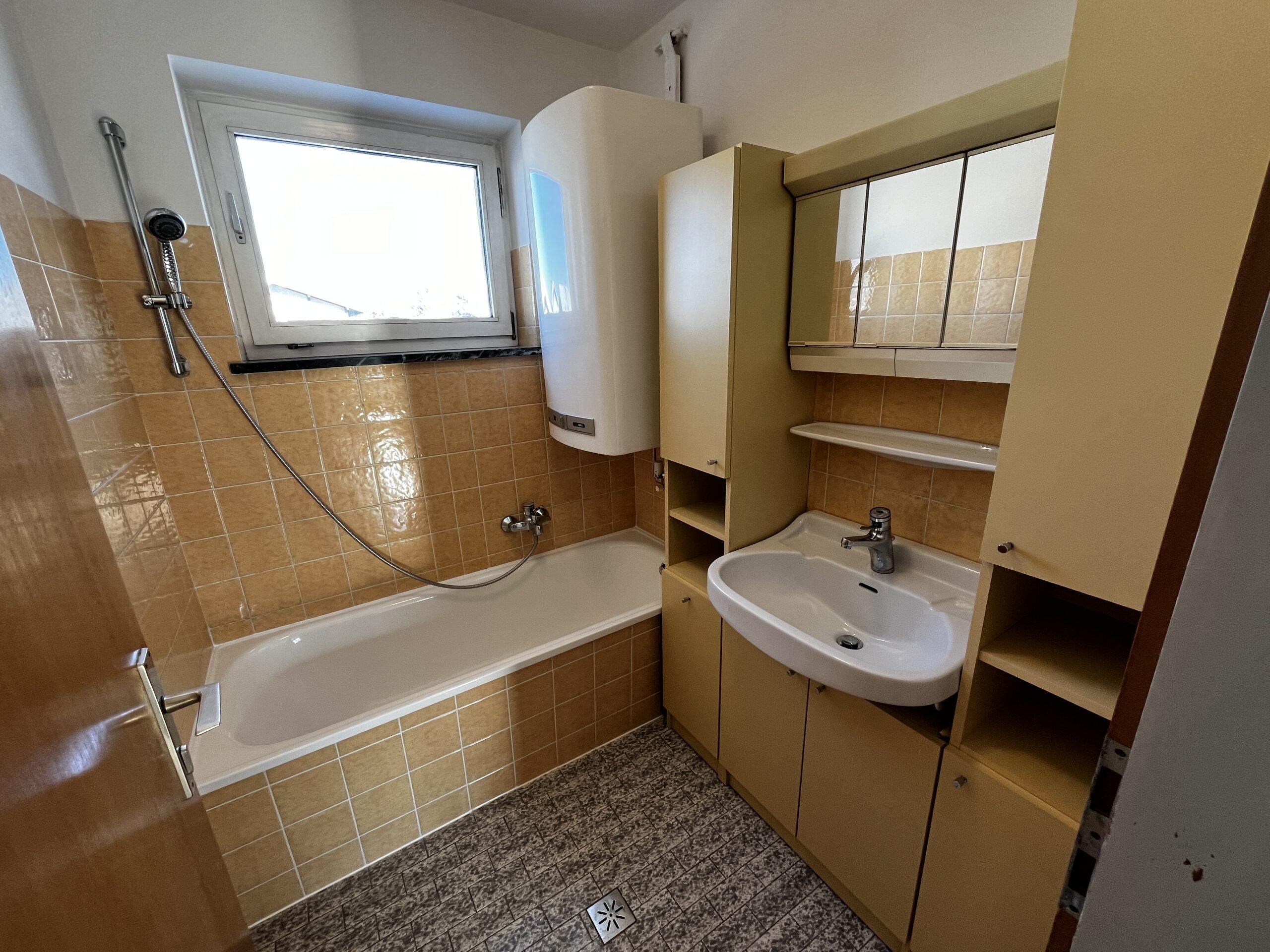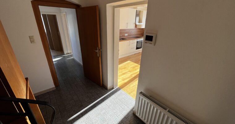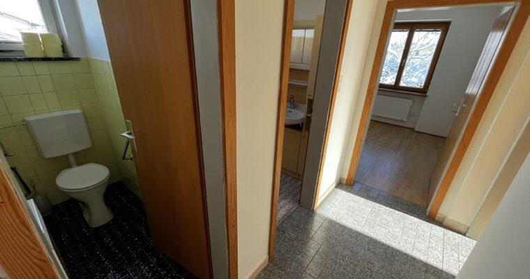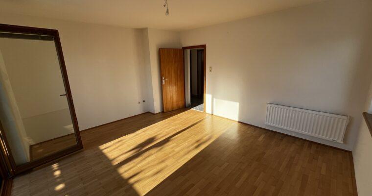 Obergeschoß: Gesamt ca. 65 m², Wohn-Esszimmer mit Küche (ca. 17 m²) und Zugang zum Balkon (ca. 10 m²), Wohn/Schlafzimmer (ca. 19 m²) und Zugang zum Balkon, 2 weitere Schlafzimmer (ca. 11 m²/ca. 6 m²), extra WC mit neuem Fenster, Badezimmer mit Badewanne und neuem Fenster, Stiegenhaus/Flur mit Abstellflächen