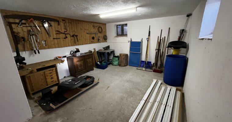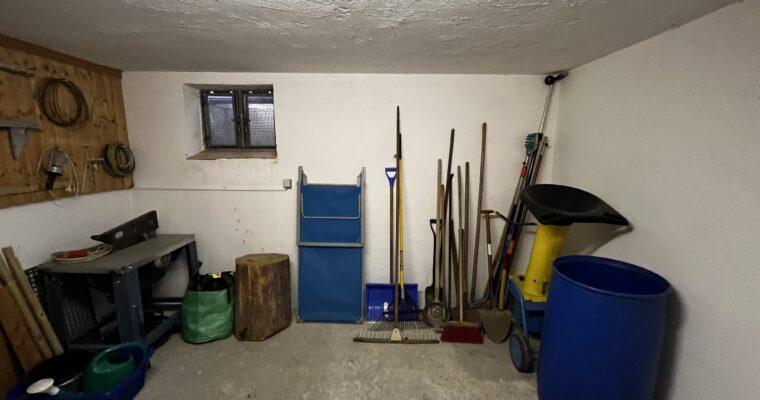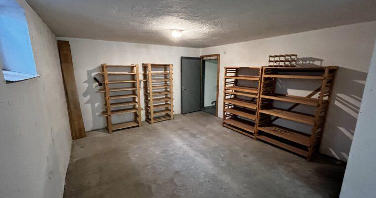 Keller: 2 große Kellerräume mit gesamt ca. 65 m², Anschlüsse für Waschmaschine und Trockner, teilweise Regale vorhanden.