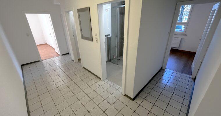 Großzügige 3,5 -Zimmer Wohnung (ca. 76 m² Wohnfläche) zzgl. Loggia (5,8 m²) im Hochparterre (barrierefrei – mit Lift erreichbar) nach umfassender Sanierung (neue Küche, neues Badezimmer/WC, neue Fenster, neue Fernwärmeheizung) neu zu vermieten.