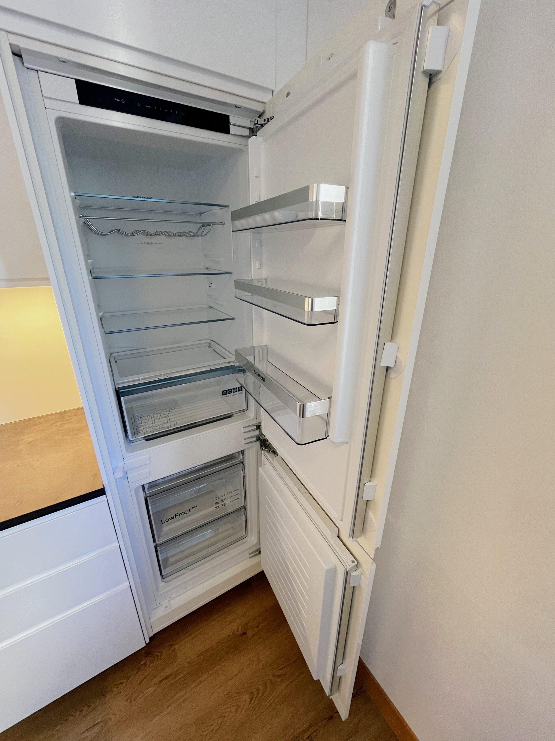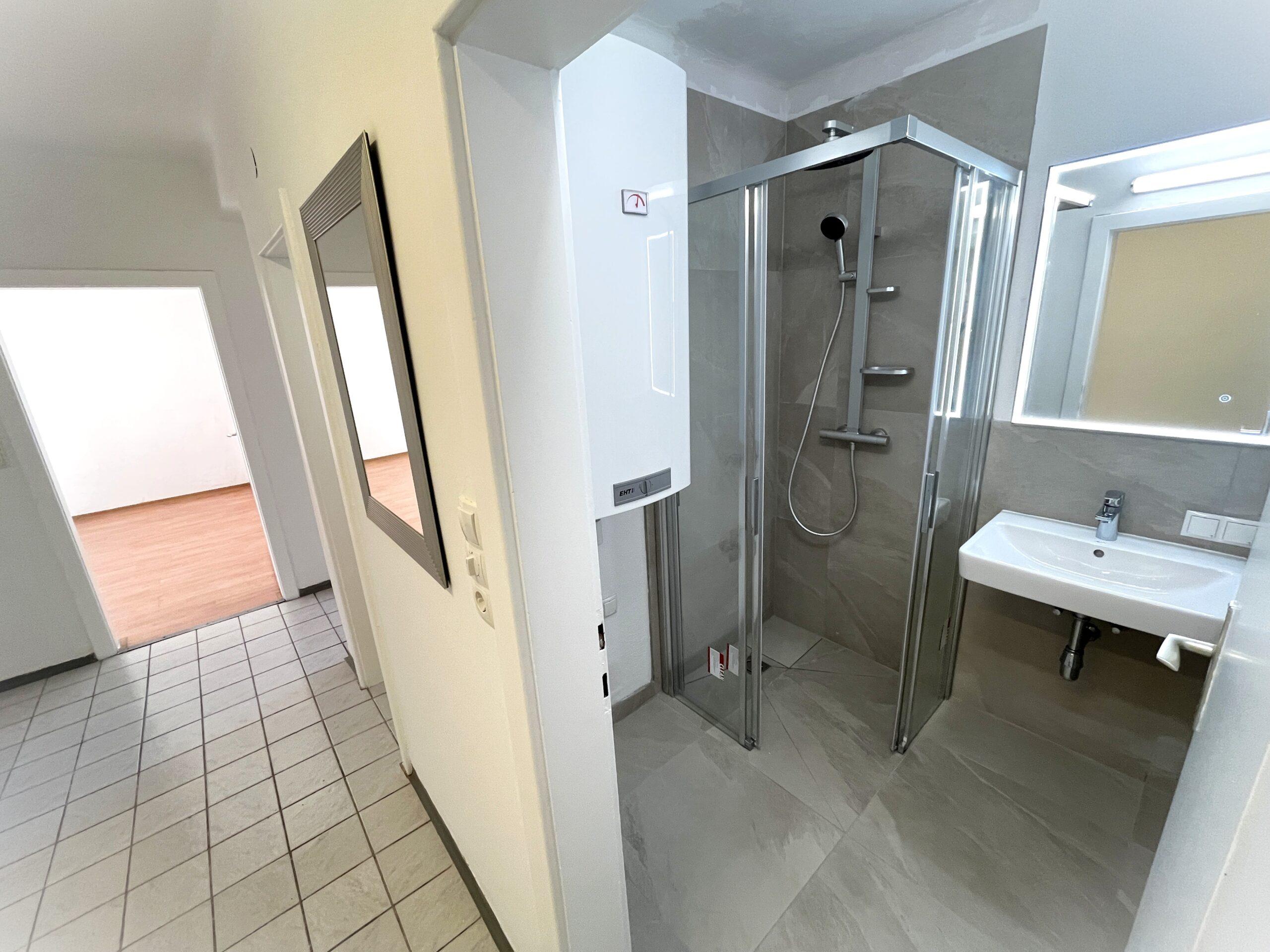 Aufteilung: Vorraum/Ankleideraum (11 m²) mit viel Platz für Schränke/Stauraum, Küchenzimmer mit Platz für einen kleinen Esstisch (8 m²) mit Fenster, Wohnzimmer (19 m²), Schlafzimmer (12 m²), Schlafzimmer/Wohnzimmer (18 m²) mit Zugang zur sonnigen nach Süden ausgerichteten Loggia (5,8 m²), neues Badezimmer (Waschmaschinenanschluss vorhanden), neues separates WC.